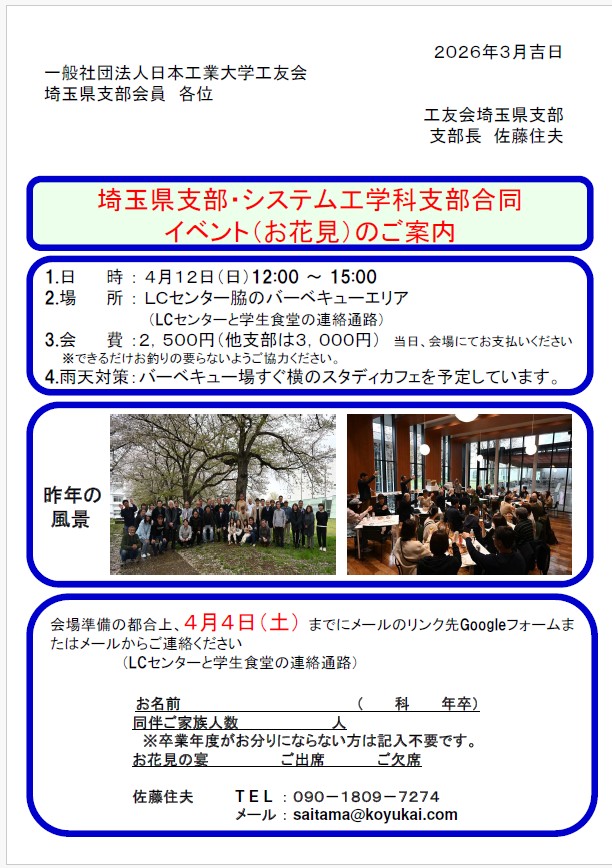 ☆皆さんお待たせいたしました、埼玉県支部「お花見イベント」のご案内です。